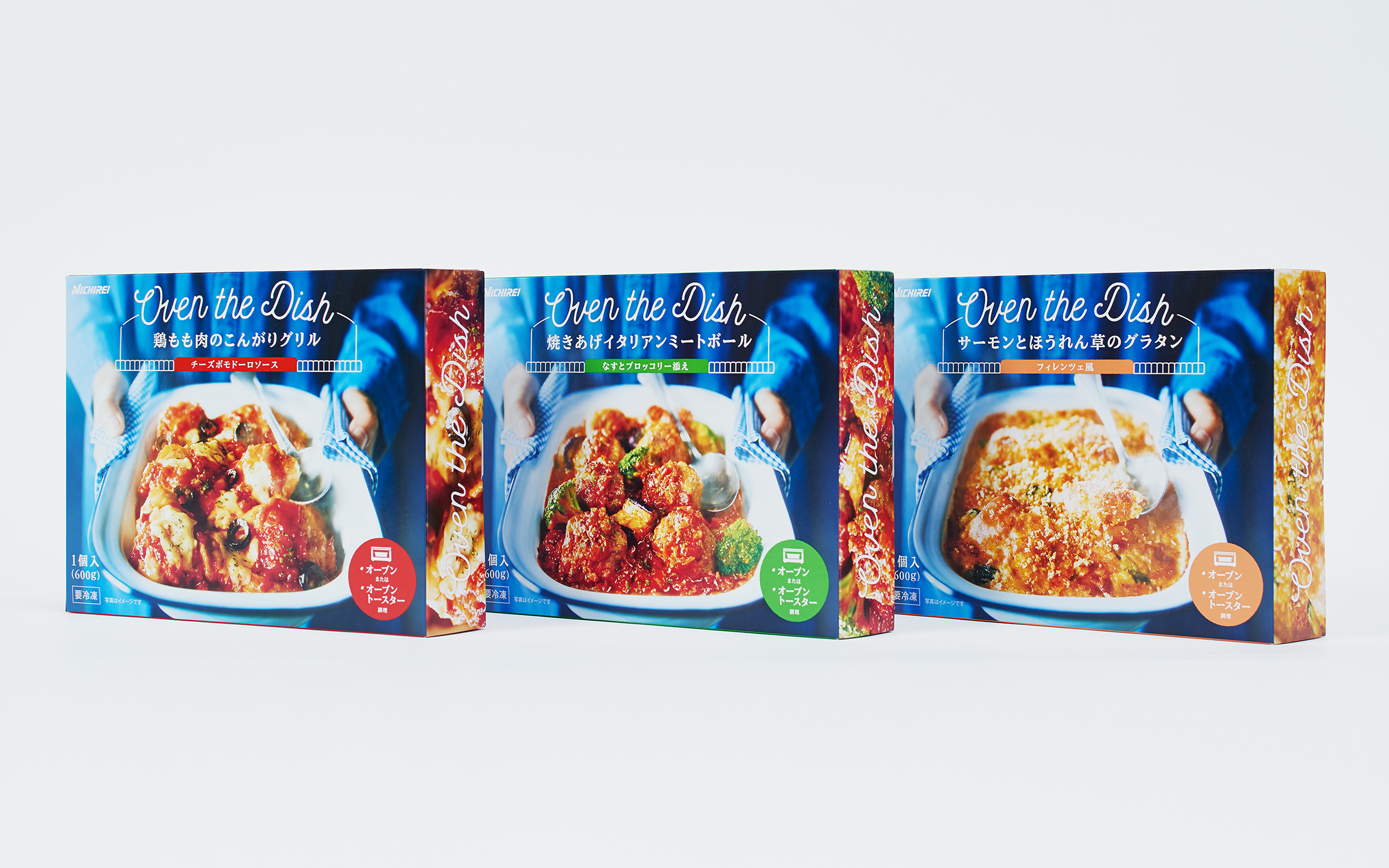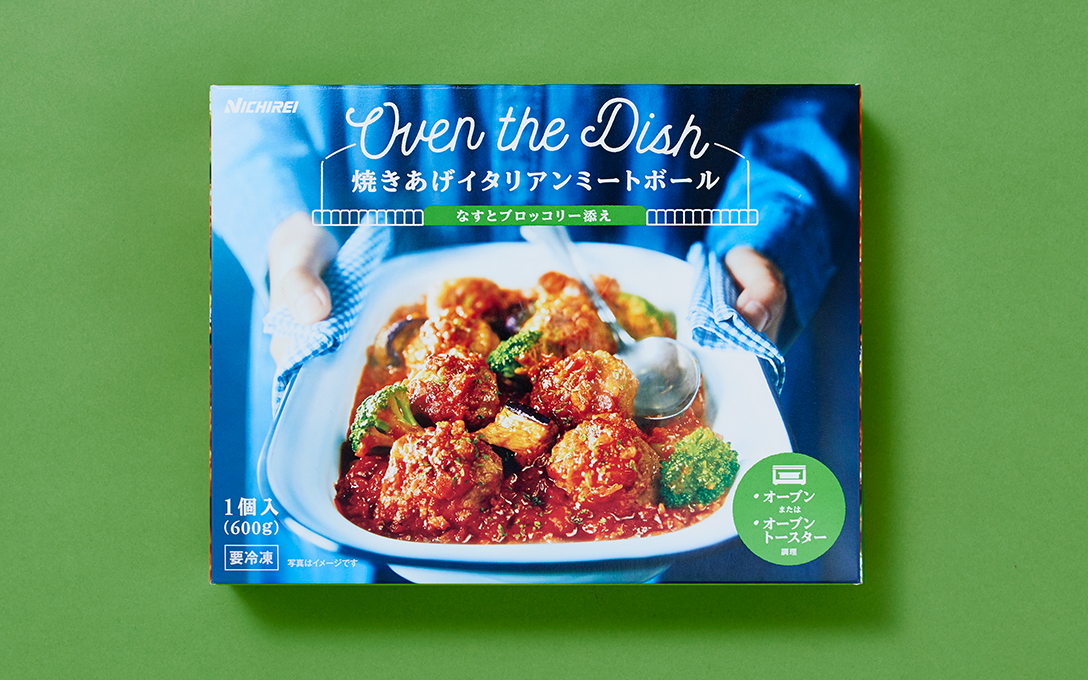 用于烤箱加热的冷冻食品的包装设计。“只需烤箱加热,
